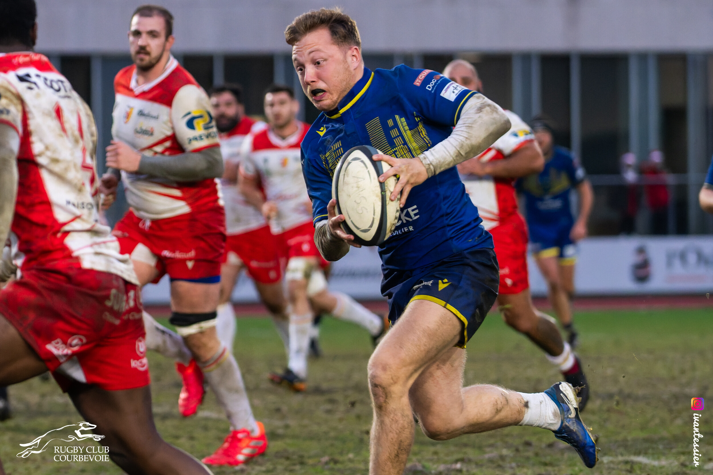 Contre le vent en première mi-temps, Courbevoie va rapidement prendre les choses en main et réaliser une superbe première demi-heure, avec à la clé deux essais et les points pris quand il le faut. Barbezieux se fait trop pénaliser, est trop imprécis sur ses touches, tandis que la défense des lévriers, bien organisée, n’est jamais réellement mise en danger.